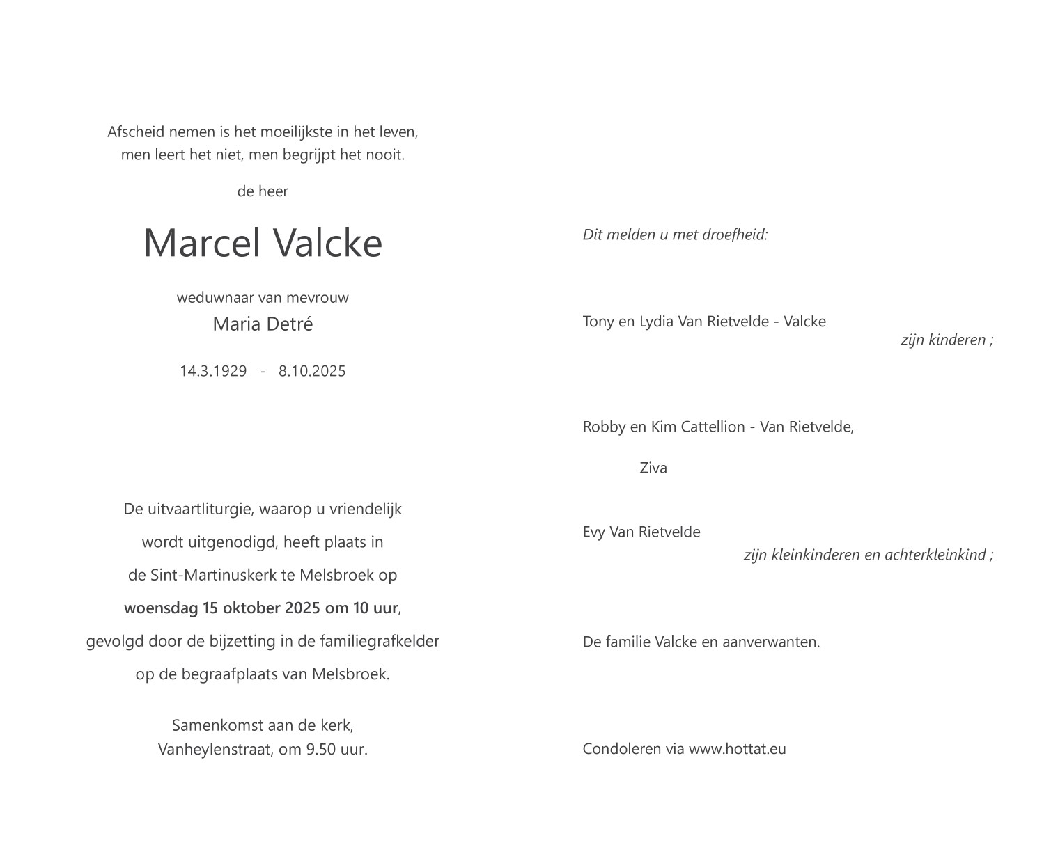 Overleden te Melsbroek (1820) op woensdag 8 oktober 2025 op 96-jarige leeftijd