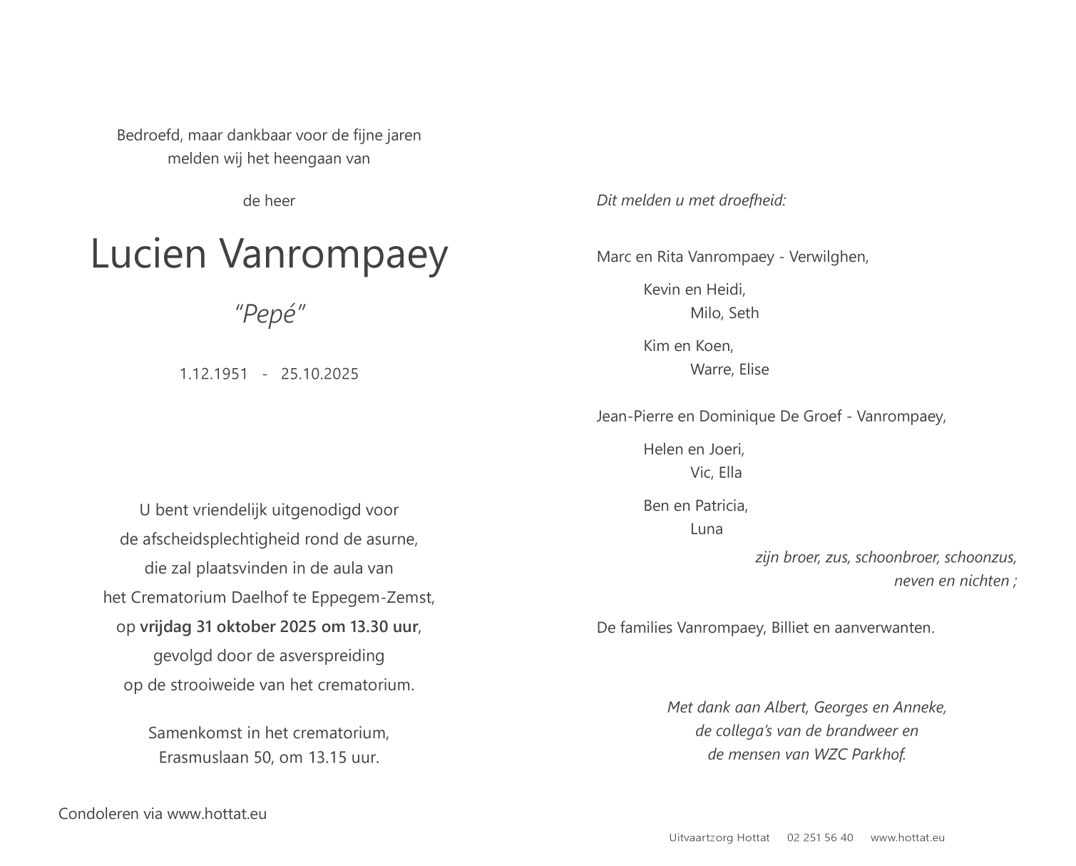 Overleden te Machelen (1830) op zaterdag 25 oktober 2025 op 73-jarige leeftijd