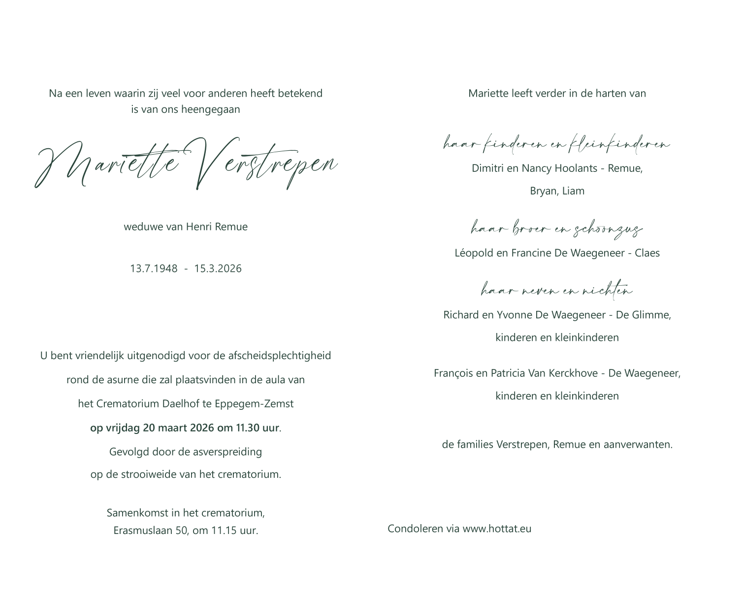 Overleden te Melsbroek (1820) op zondag 15 maart 2026 op 77-jarige leeftijd