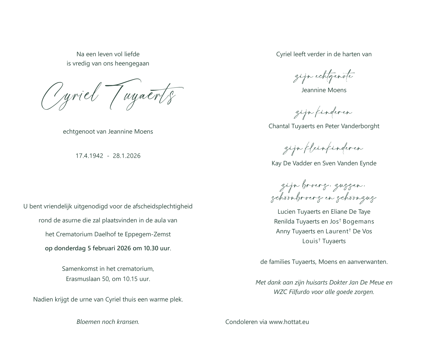 Overleden te Vilvoorde (1800) op woensdag 28 januari 2026 op 83-jarige leeftijd