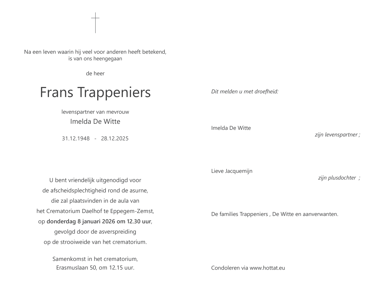 Overleden te Vilvoorde (1800) op zondag 28 december 2025 op 76-jarige leeftijd