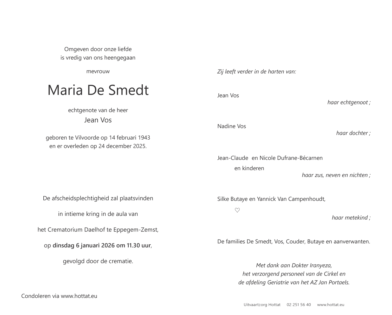Overleden te Vilvoorde (1800) op woensdag 24 december 2025 op 82-jarige leeftijd